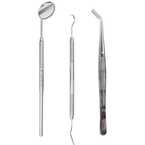 Regular price Rs. 300.00Sale price Rs. 300.00 Regular priceUnit price perSale Sold outDiagnostic set containing double-ended explorer, mouth mirror and tweezer Waldent Dental Instruments excel in highest quality standards. They are manufactured from selective stainless steel by skilled workers...